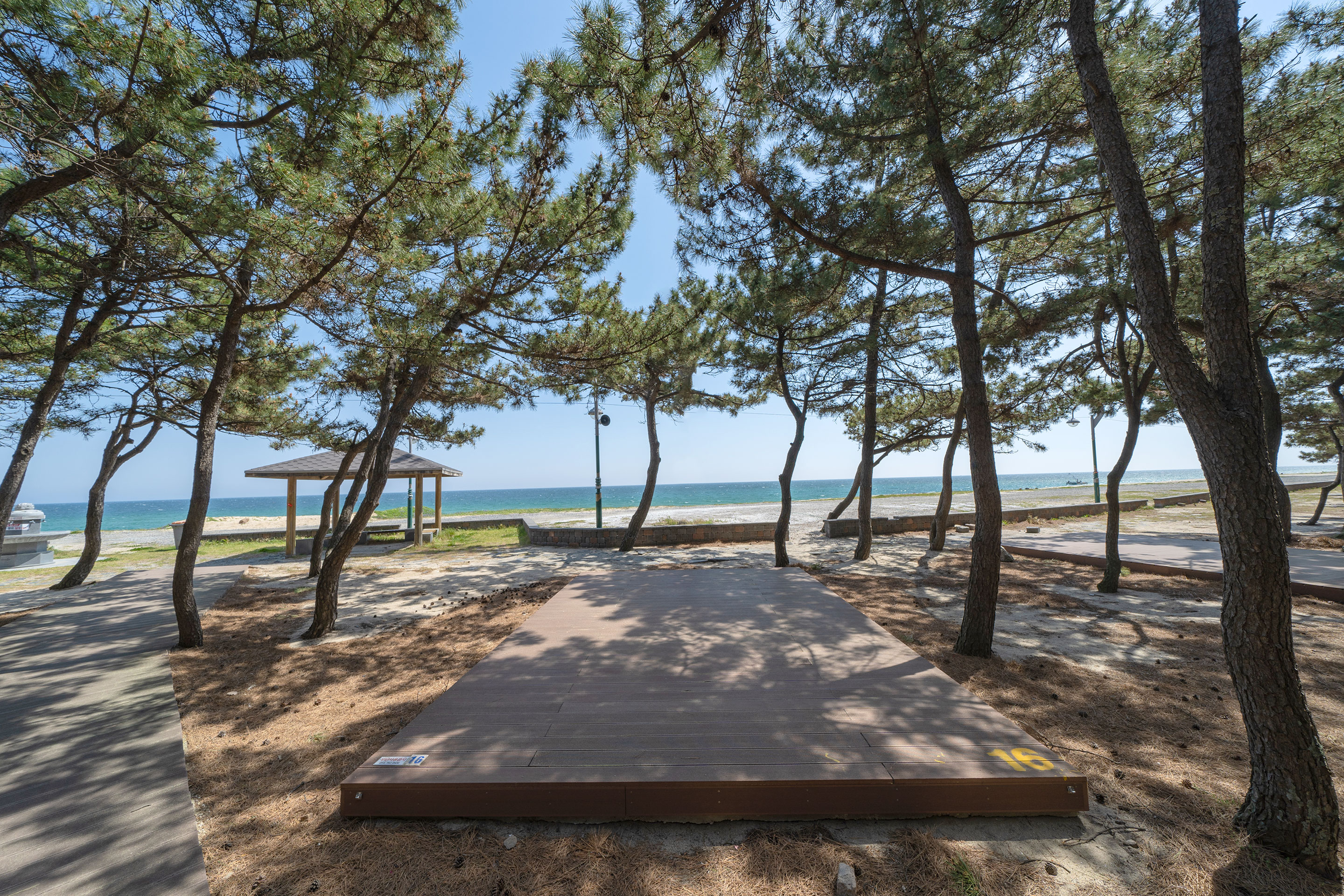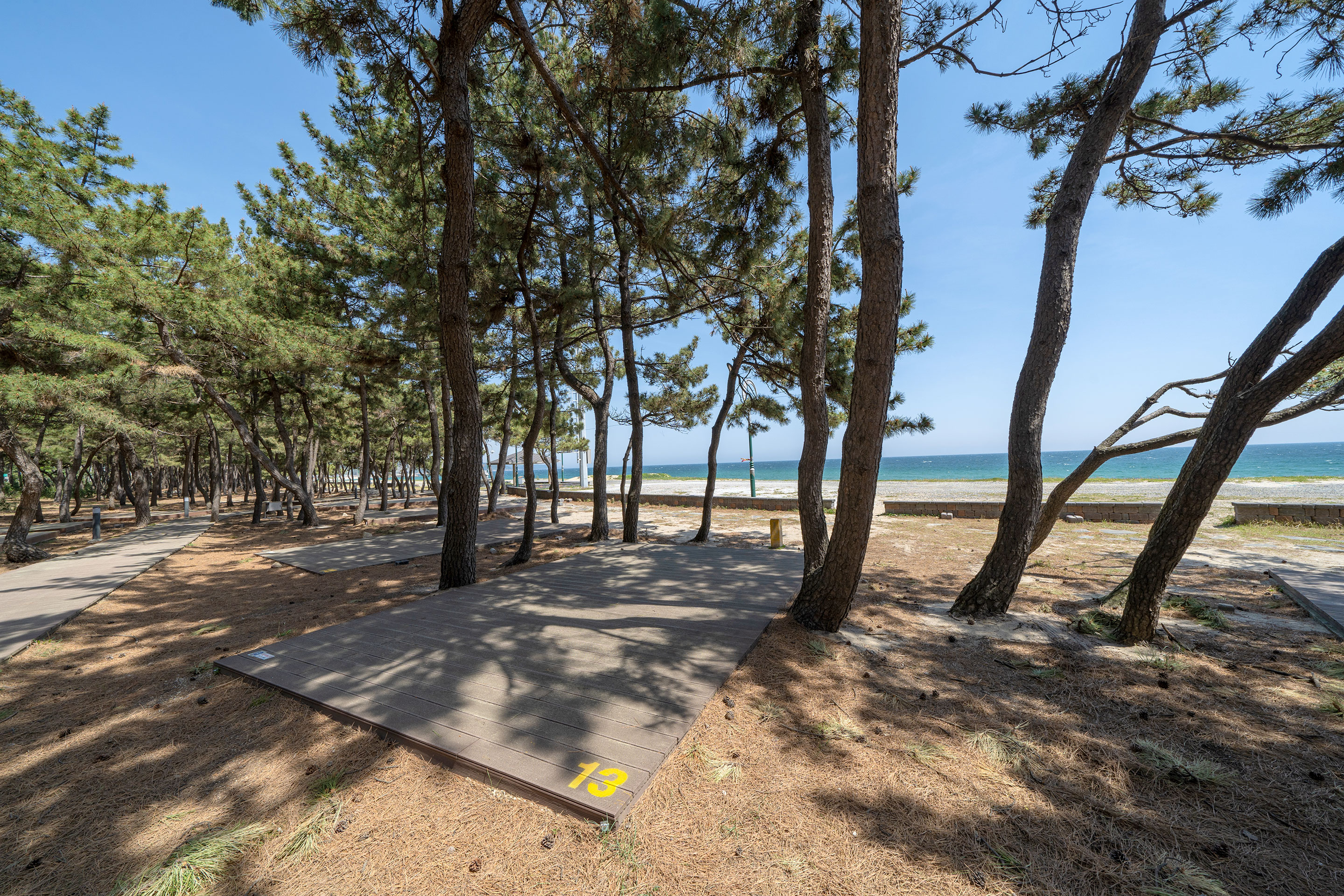 소나무숲에 조성되어 있는 데크존A(1~25번)입니다.